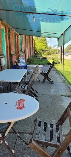 Al entrar, se puede apreciar el frente del establecimiento, donde se ubican mesas y sillas bajo una media sombra que invita a los clientes a disfrutar de una tranquila pausa. Aquí, se pueden probar las deliciosas galletas de campo y las suculentas facturas hechas en el horno de la Panadería, siempre preparadas con ingredientes frescos y de alta calidad.